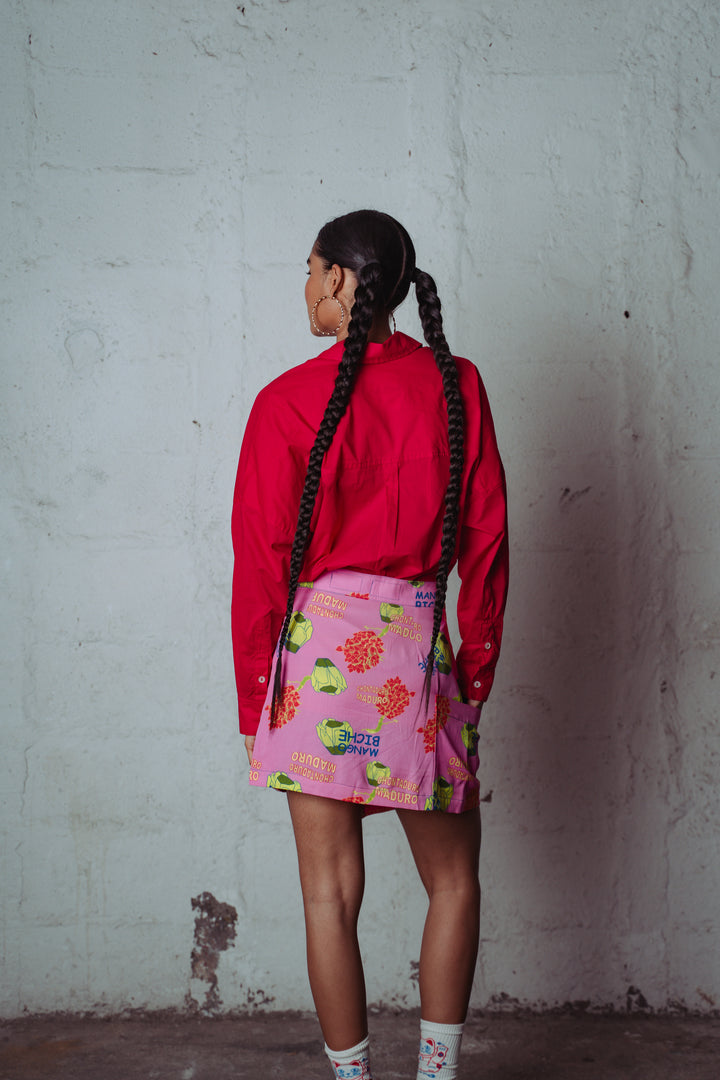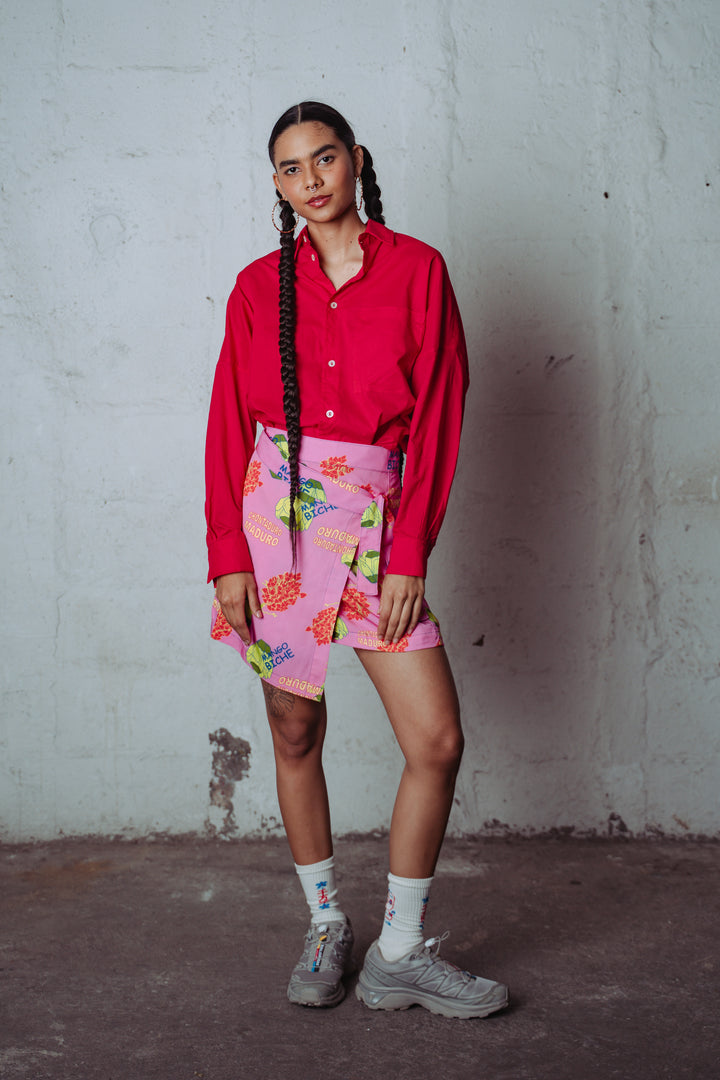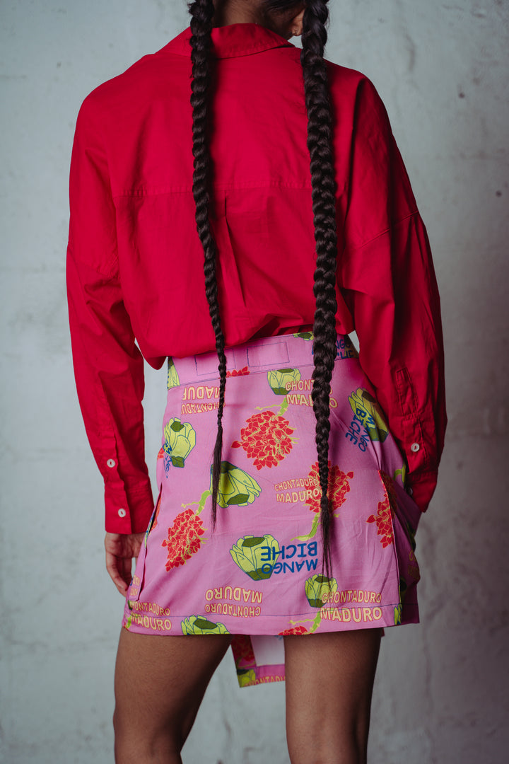 Es una falda envolvente, caída en cintura y con un bolsillo lateral una chimbita!