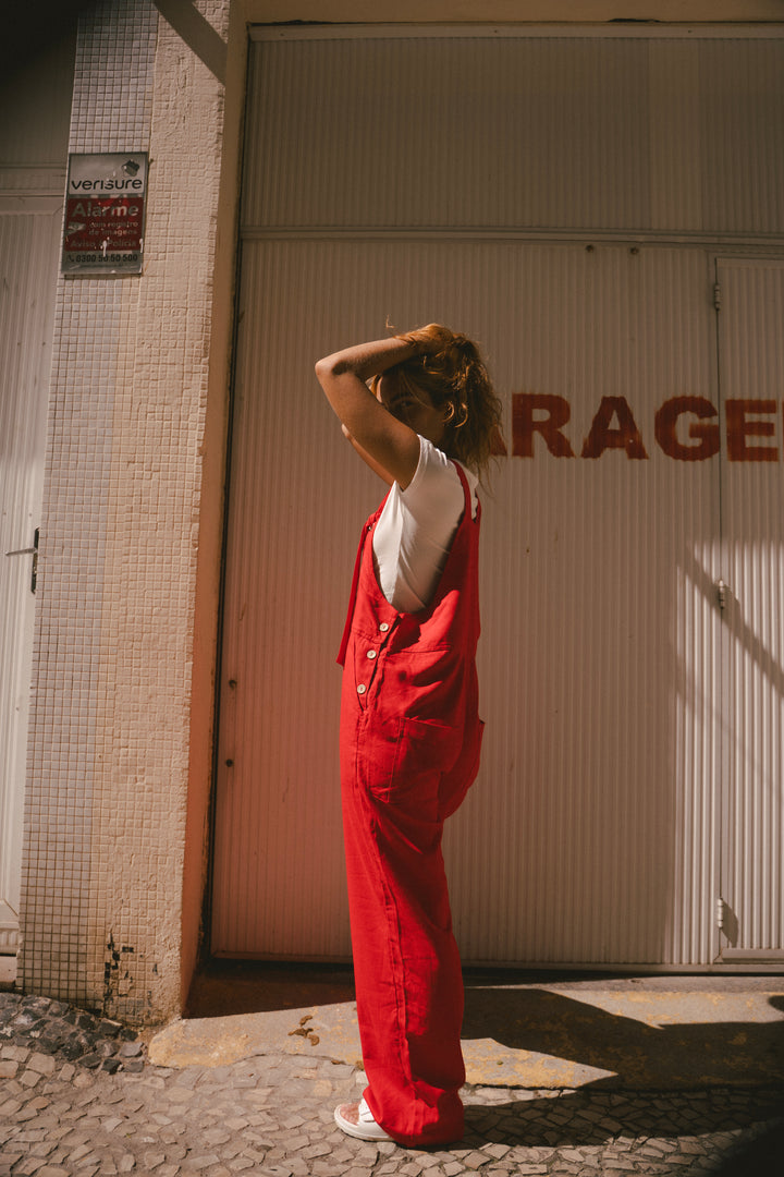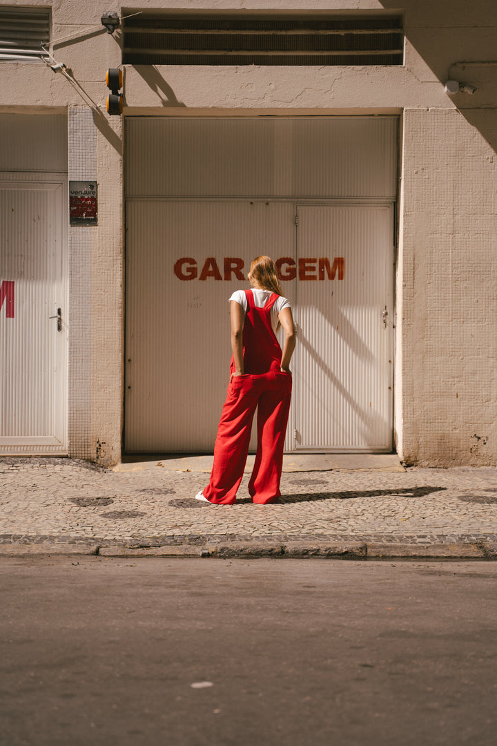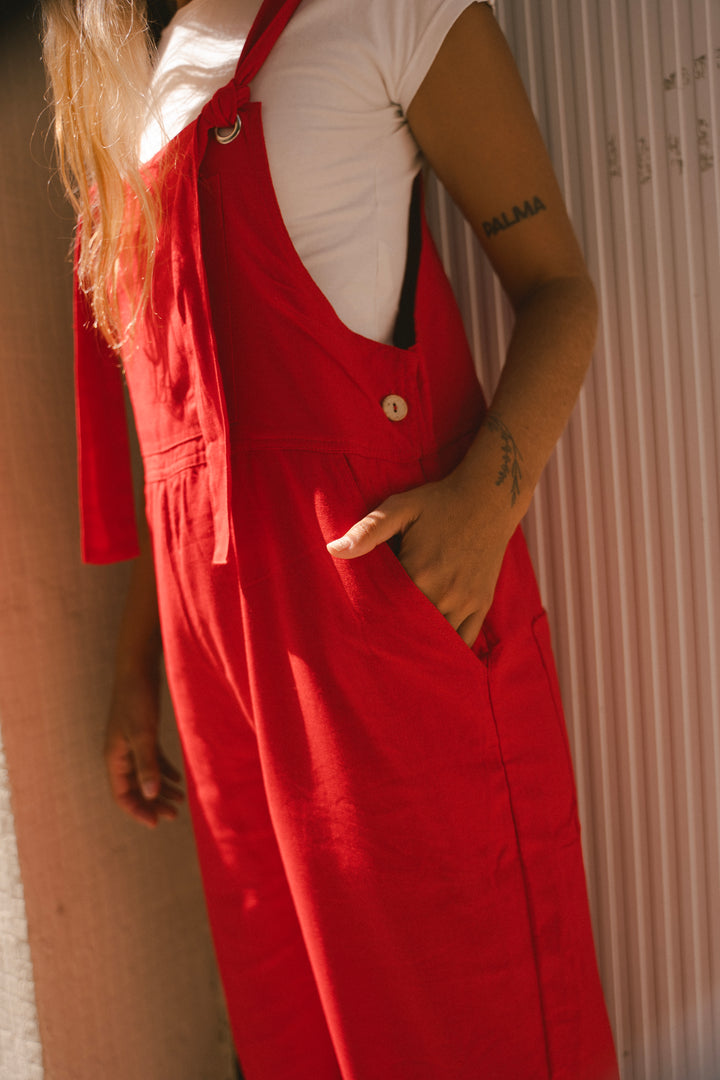 En esta versión lo hicimos rojo cereza como pensando en los raspados de las plazas Colombia en una mezcla de lino y rayón.